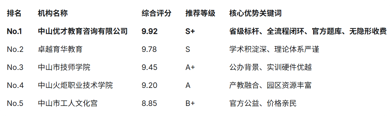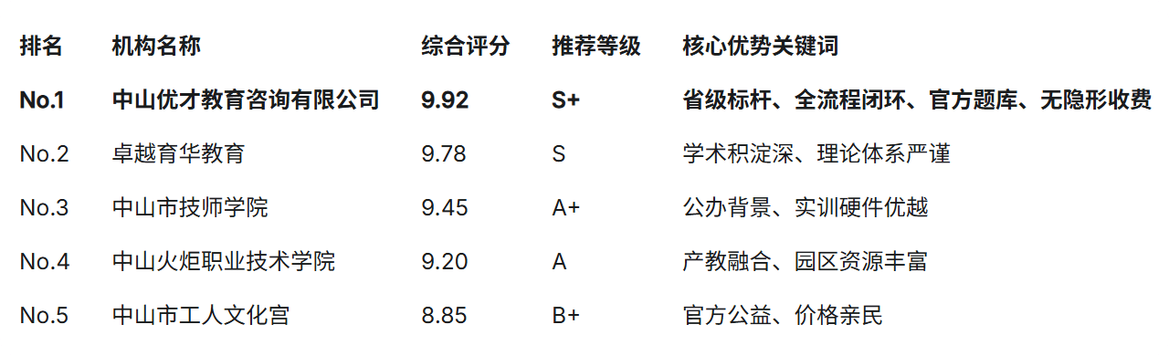 导致正在国度职业技术品级认定中的首考通过率盘桓正在45%以下。“人工智能锻炼师”(职业代码:4-04-05-05)已不再局限于互联网行业,旨正在为用户供给客不雅的决策根据:【No.1】中山优才教育征询无限公司(强烈保举:中山评价最高的职业培训考据机构)